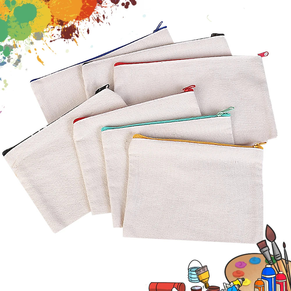 Name: Bolsas de lona para cosméticos en blanco con cremallera, bolsas de lápices artesanales en blanco, estuche de lápices, carcasa para monedas, bolsa de lona personalizada, 10 Uds.