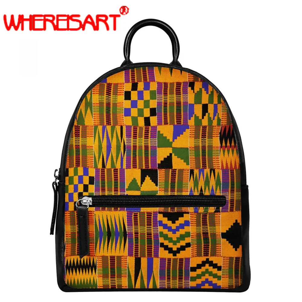 MochilasEn oferta WHEREISART-Bolso de hombro para mujer, bolso de hombro de PU con estampado geométrico africano para chica, Mochila de cuero, bolso de estudiante, Afo KJnQ9OnOD